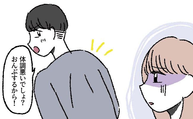 3. 「ホラ、乗って!」私の体調を心配してくれる彼。うれしいけれど…過剰すぎて「嫌ぁー!!」