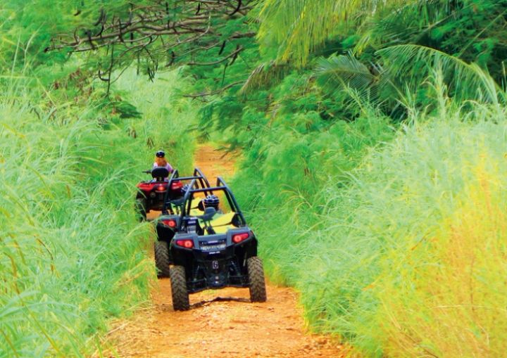 自分で操縦するバギーでサイパンのジャングルを走るアドベンチャーツアー。穴場のビーチや農園など、サイパンの自然や美しい景色を堪能できます。