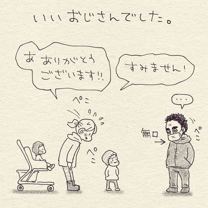 声を掛けずにじっと見ていたところを見ると、人見知りなおじさんだったのかもしれません。思わぬところで人の優しさに触れた、すてきなエピソードでした。