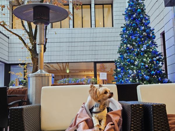 テラス席はペットの同伴が可能です。キャリーバッグやステイマットの用意などドッグマナーを守りましょう。被毛を飛ばさないように、またペットの防寒のためにも犬服を着用させることもオススメします。