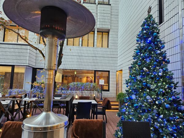 テラス席には、ストーブが設置されています。台数も多く、どの席に座ってもストーブのあたたかさを感じることができます。テラス席でクリスマス気分を味わいたいときには、この寒さに対する配慮がとても嬉しいです。