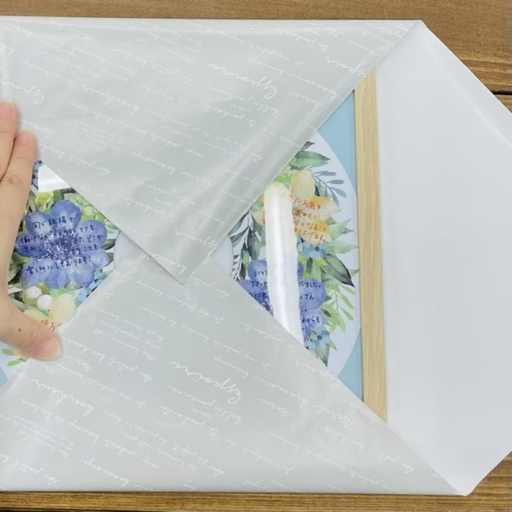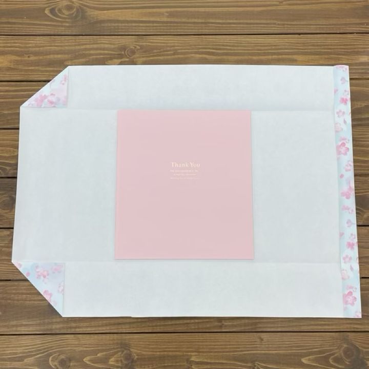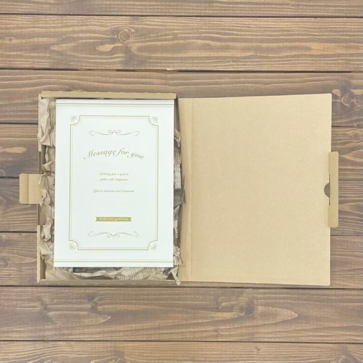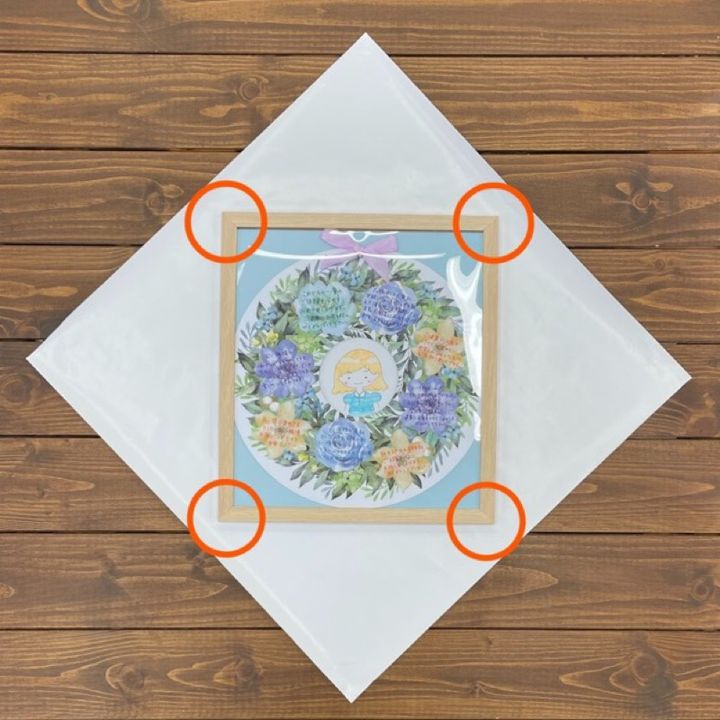 特に、スクエア包みで包装したい場合は額縁の上からラッピングした方がきれいに包装できるため、おすすめです。