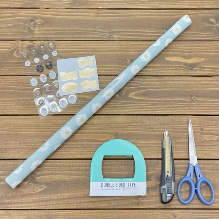 包装紙の重なる上下の部分を、手紙のようにシールやマスキングテープで飾ったら完成です。