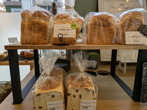 看板商品でもある、リニューアルオープンする以前のお店からの人気商品「ラパンの食パン」は、ミルクと練乳を使用し、ミルキーな食パンです。(レジで注文 一斤480円、2斤960円) 他に2種ある食パンは、あっさりサクッとした「パン・ドミ食パン」と、もっちりとした生地が特徴の「湯だね食パン」。そして後者のネーミングは「いい湯だねぇ食パン」!これが言いたくて、家で子どもたちと楽しく食べました♪