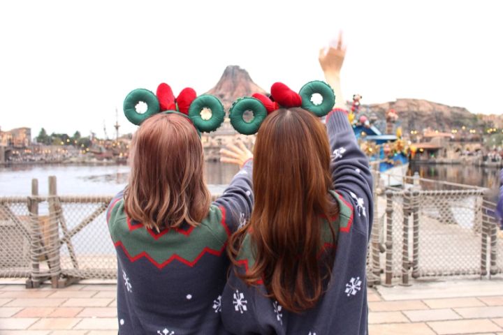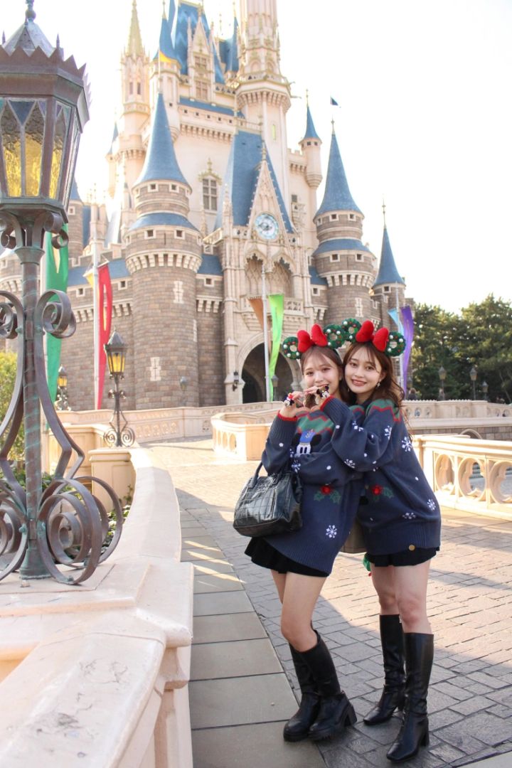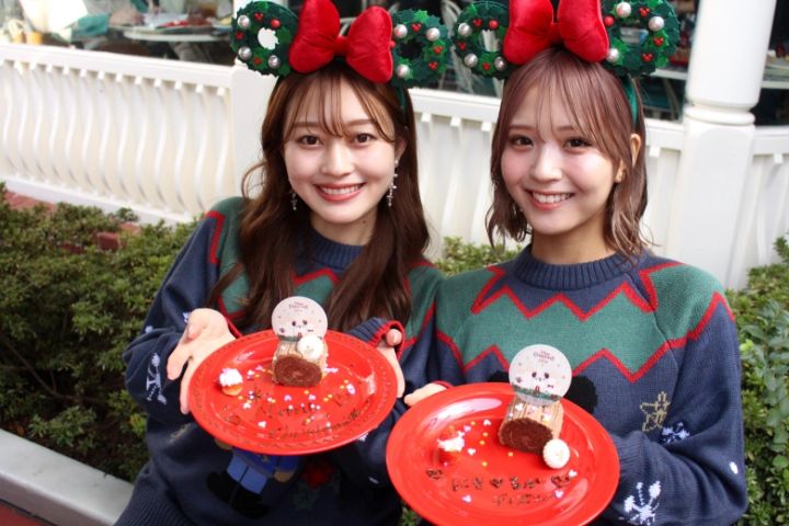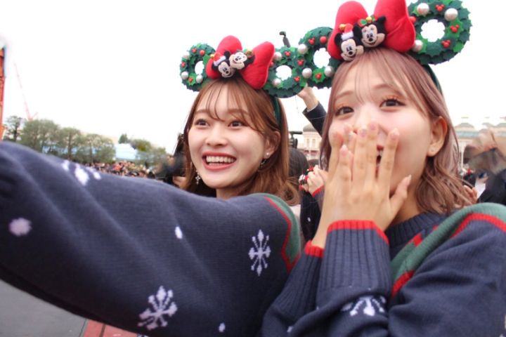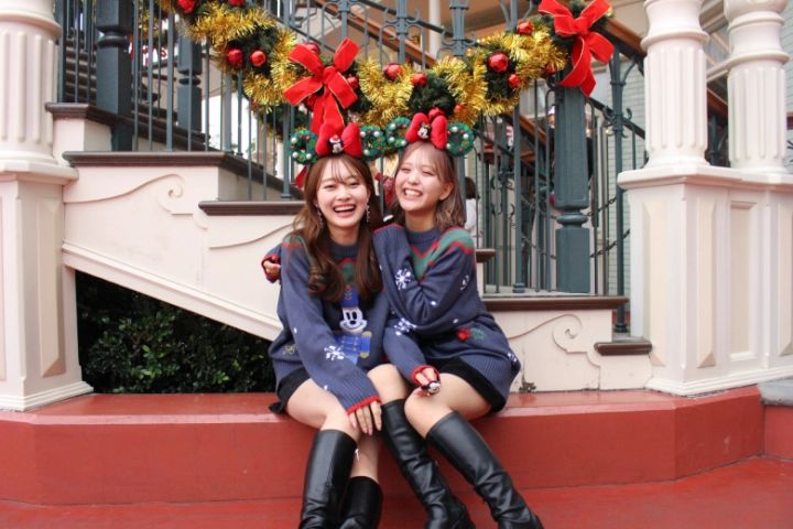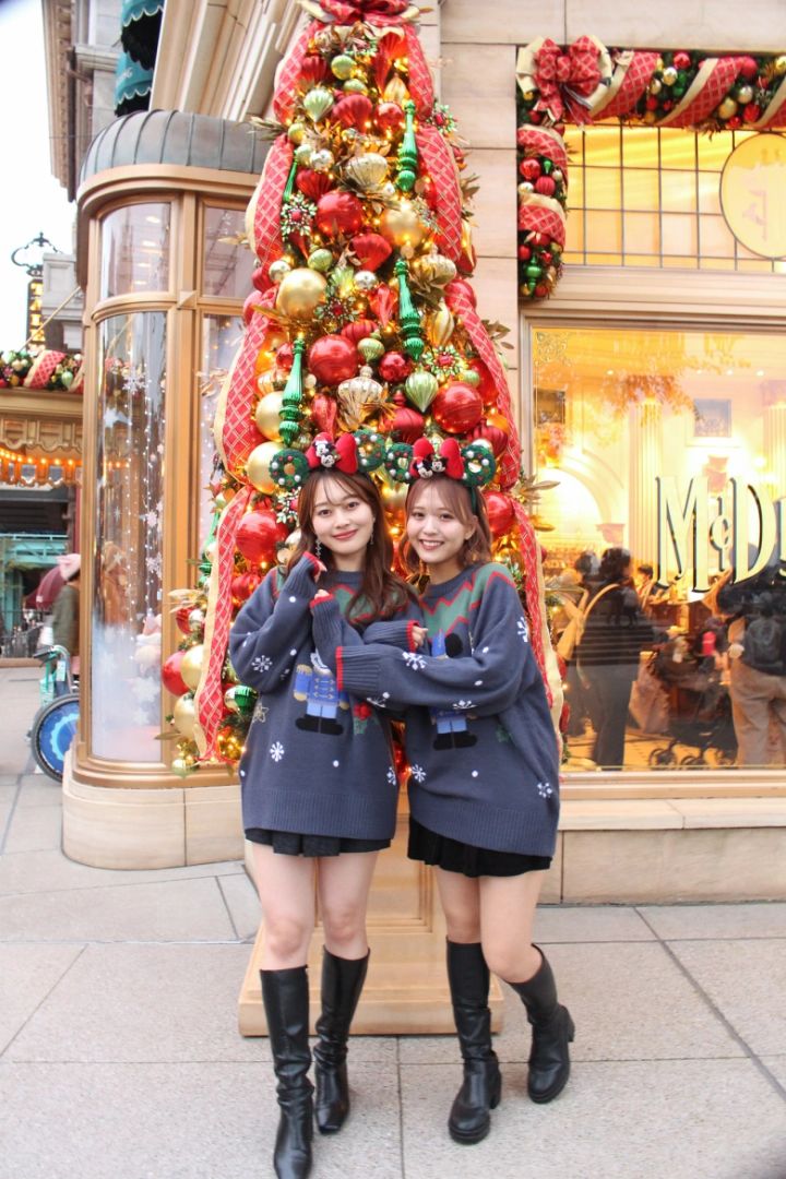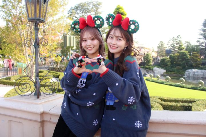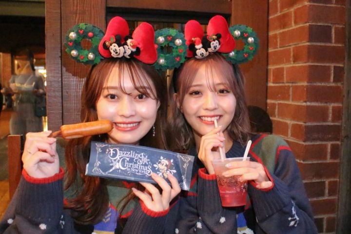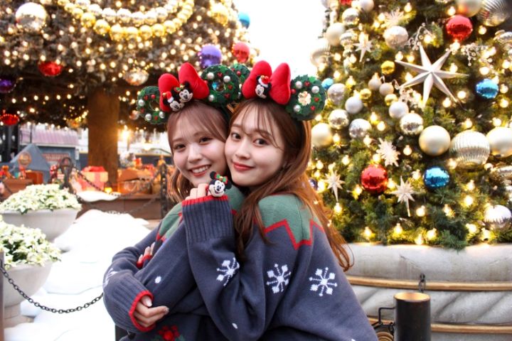 2人ともクリスマスシーズンには必ず来るというディズニーファン。グッズを目当てに来るくらいなんだとか。