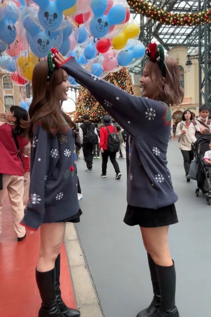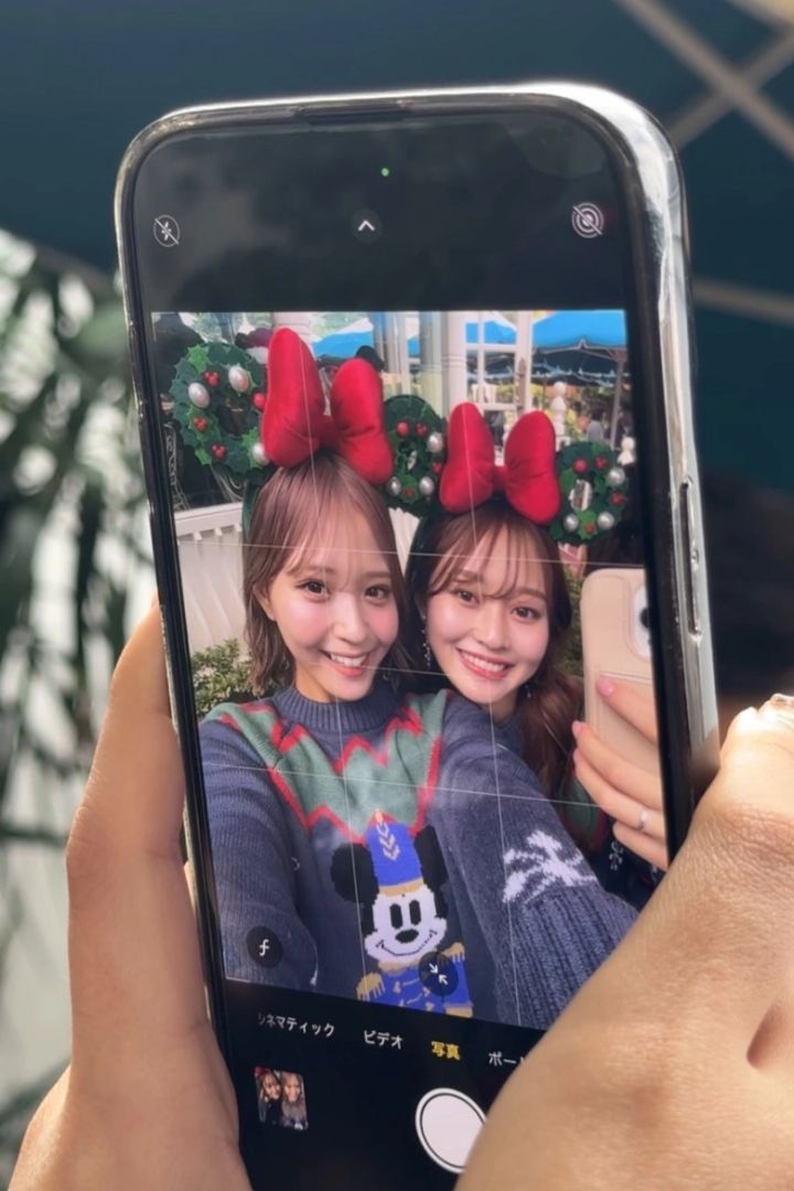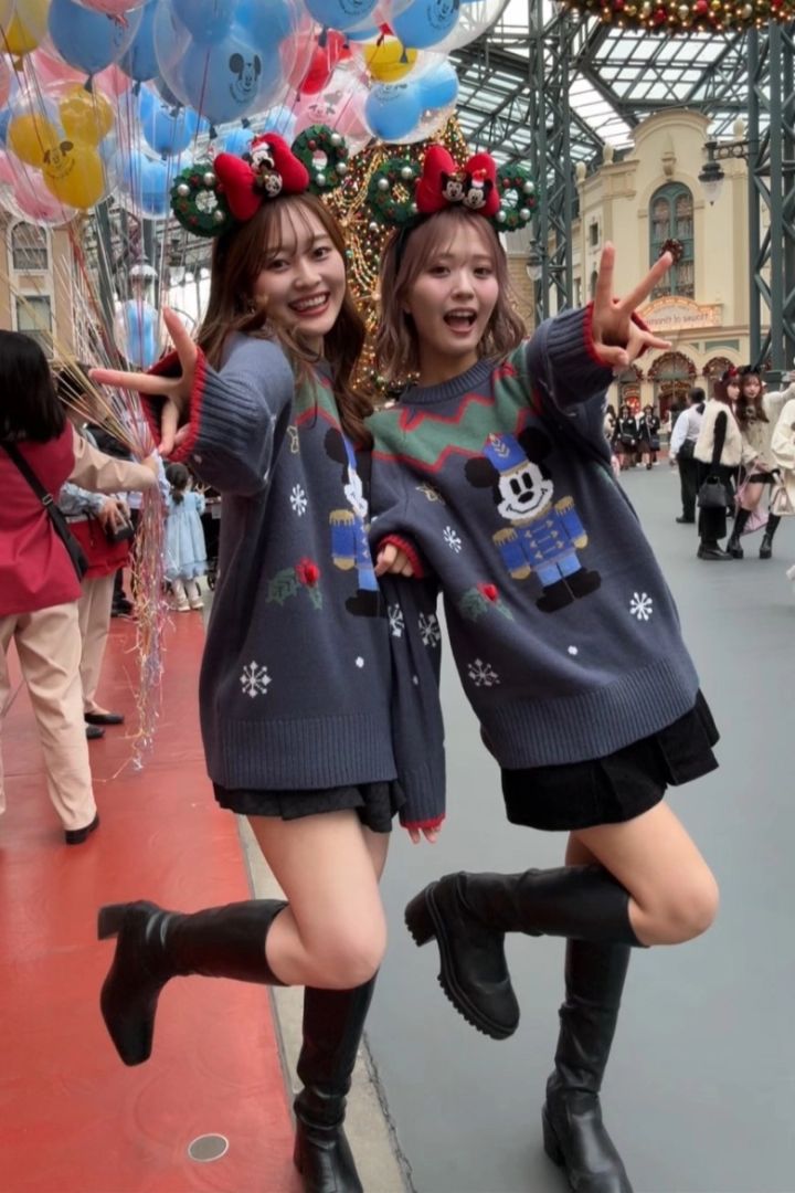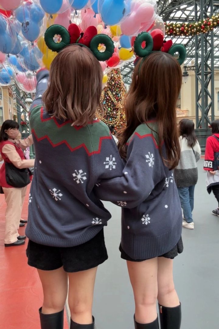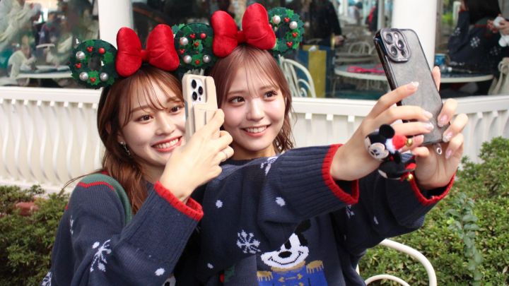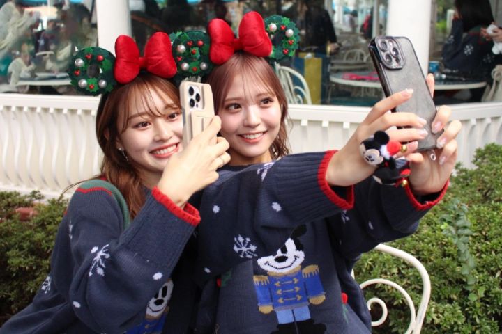 2人ともクリスマスシーズンには必ず来るというディズニーファン。グッズを目当てに来るくらいなんだとか。