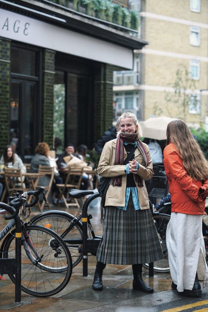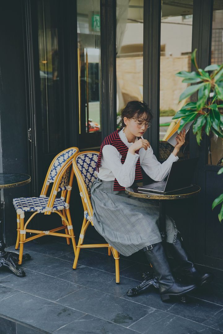 マーケット大国ロンドン。毎週日曜日のお楽しみはもちろん、コロンビアロード・フラワーマーケット!「今日はタマサボテンをGET するわ」なんて意気込むリリーの着こなしには、お洒落ポイントが満載。クールなレザージャケットに忍ばせたチェックシャツのレイヤードだったり、クラシカルなチェックスカートとブーツの丈感だったり。黒のアイテムを取り入れて着こなしを引き締め、襟周りや手首にポイントで色を加えるテクニック、真似したい。