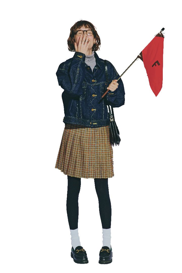 チェックスカート×デニムのレイヤードはお見事!スタジャンでアメリカンガールを意識して