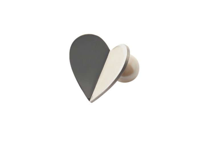 パールのキャッチで、後ろ姿もチャーミングに。ハートピアス(片耳販売)[SV925×メタル]¥18,700/MAYU(マユショールーム)