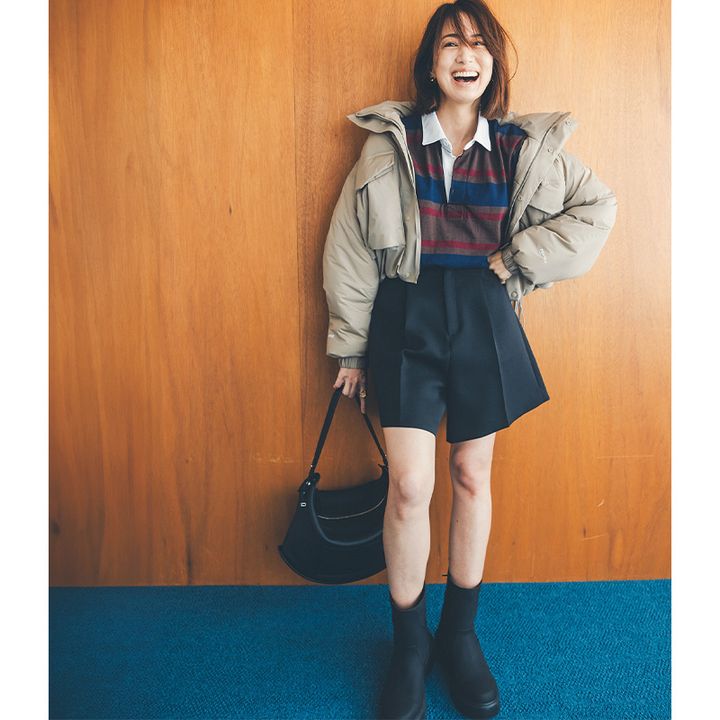 ママ的【ショーパンコーデ】は「短丈ダウン」と合わせるのが正解!