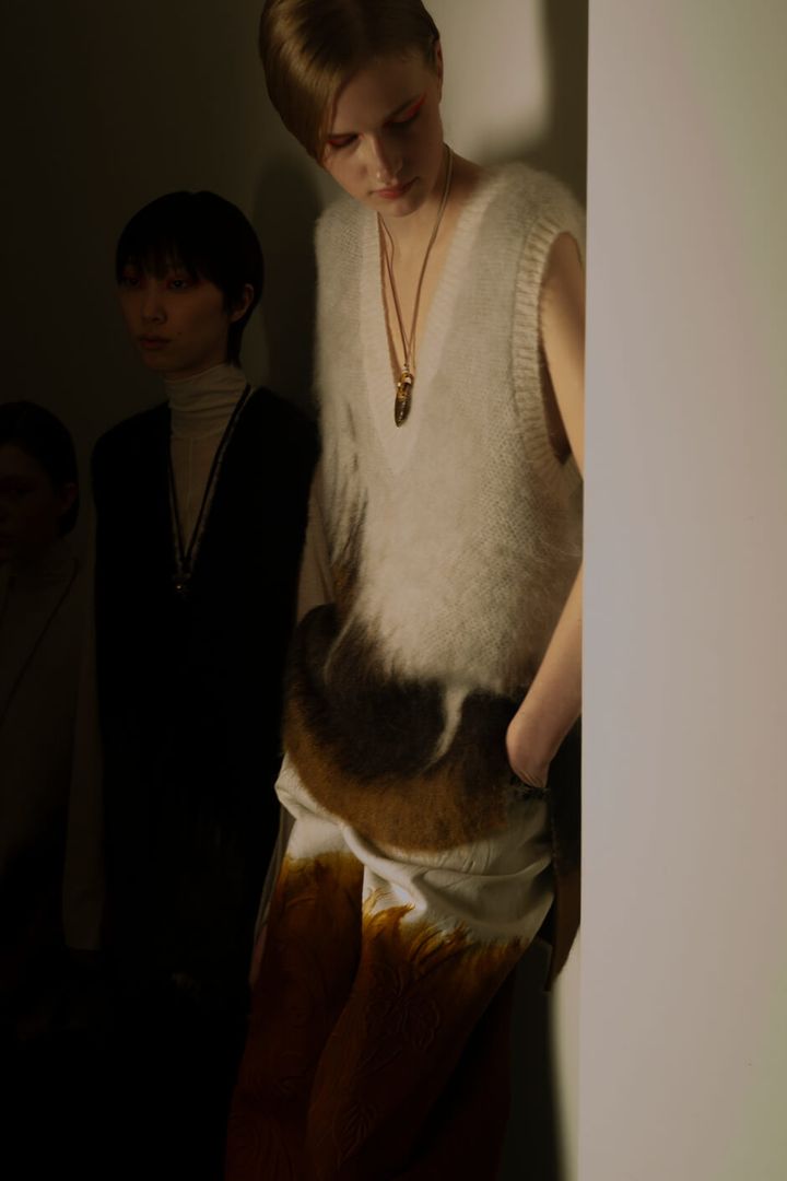 今コレクションは2024年2月にパリのOGATA Parisで行われたランウェイショーで発表され、本展ではパリ、神戸、ソウルを巡回した展示をもとに、黒河内がMAME KUROGOUCHI AOYAMAのために再構成した内容が公開されている。