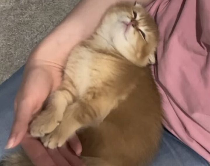 完全に飼い主さんに身を任せて♡ 子猫のおやすみポーズが可愛すぎ!