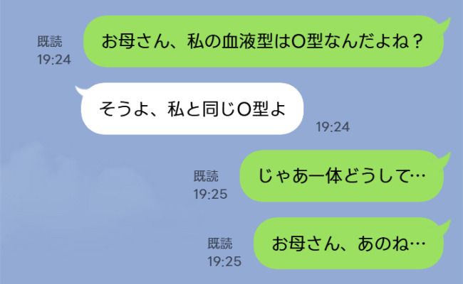 「私の血液型ってO型なんだよね?」母「そうよ、私と同じなのよ」しかし、血液検査の結果は!?