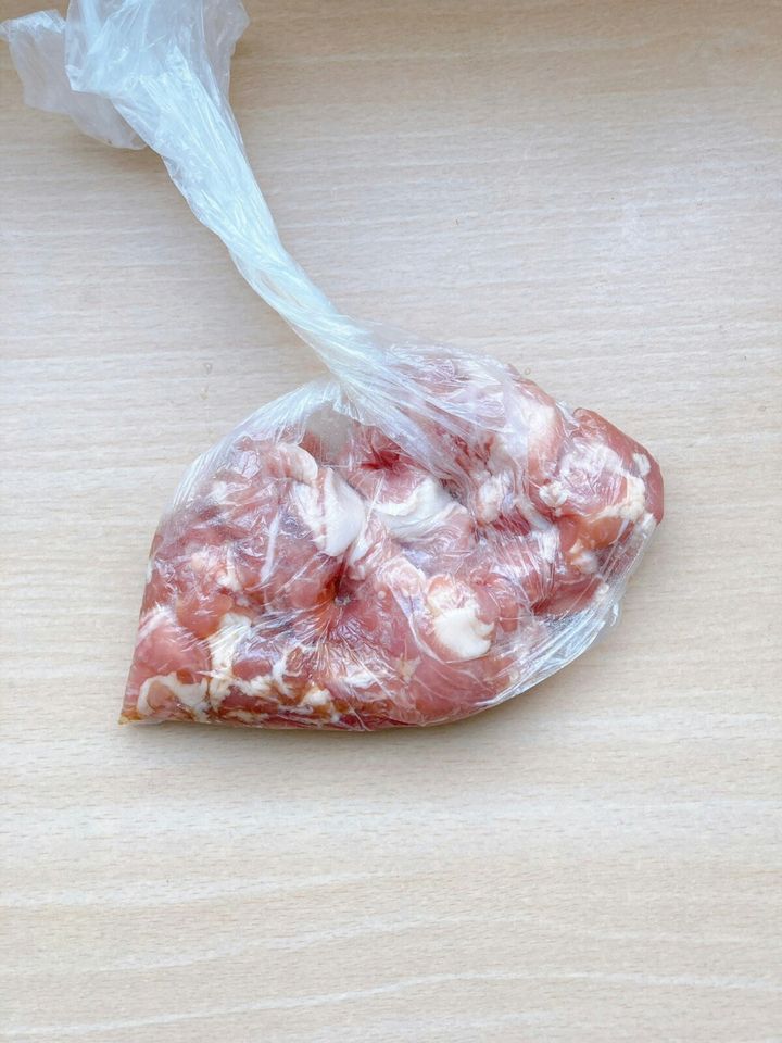 2.豚肉は食べやすい大きさに切り、★をもみこむ。