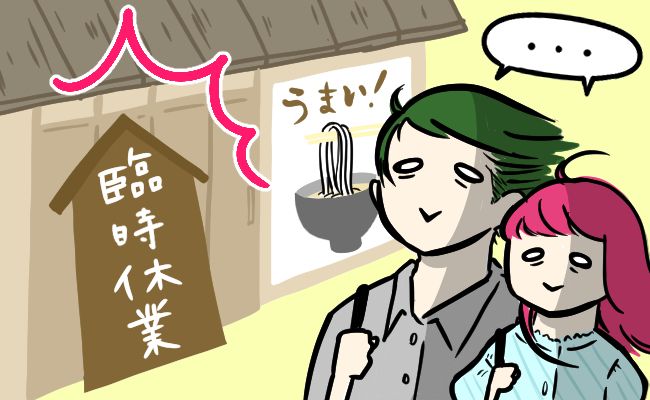 20代のころに付き合っていた彼氏と旅行をしたときの話です。私たちは出発日までに綿密なスケジュールを組みました。しかし当日、彼の車に乗り込むと30分ほどでエンジンがかからなくなり、レッカーを呼ぶことに。気を取り直して、私の車に乗り換えて再出発し彼が「絶対に食べたい!」と言っていたうどん屋さんに向かったのですが、なんとお店は臨時休業でした。