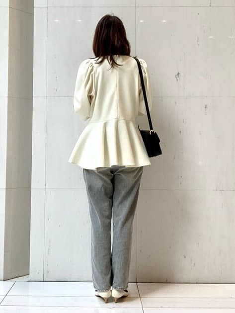 1.「白ペプラム×グレーデニム」で洗練度高めのコーデに