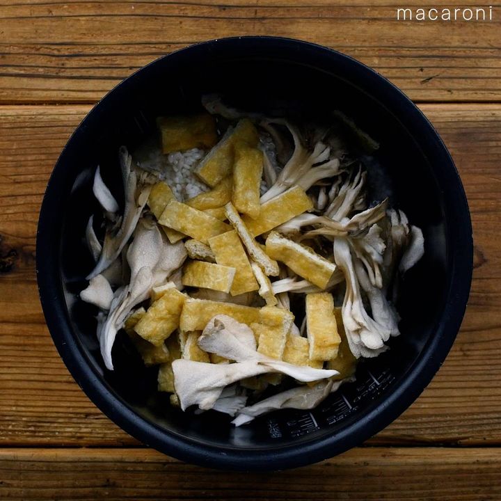 3. 白だしで味決まる!舞茸と油揚げの炊き込みご飯
