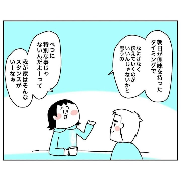 朝日ちゃん自身も心の整理が難しいと思いますが、そんな姿を見守るフォロワーさんもとてもつらかったと思います。真実告知の必要性について改めて認識し、考えさせられるお話でした。