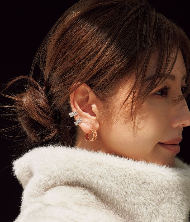イヤリング「マイ ディオール」〈PG〉¥720,000イヤカフ「マイ ディオール」〈WG×DIA〉¥960,000(ともにディオール ファイン ジュエリー/クリスチャン ディオール)ベスト¥19,800(ミースロエ)
