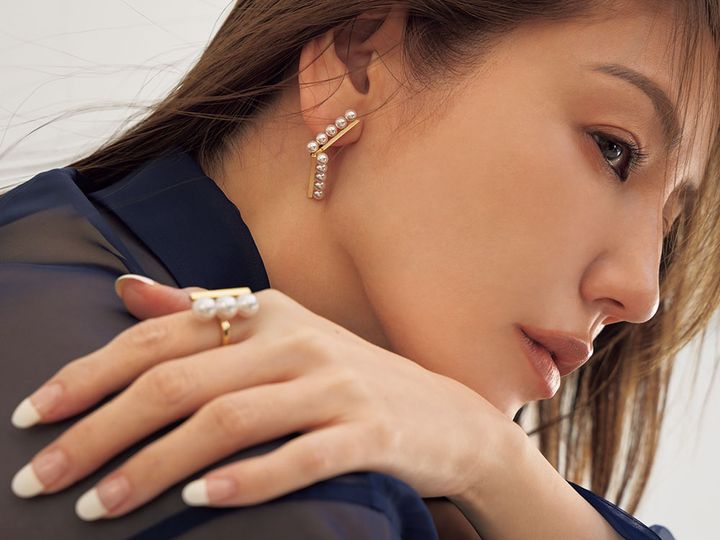 パールとダイヤモンドが共鳴する新作ブライダルコレクションでもある「ミキモト リュミエール ペルル」。パールの品とデザイン性が両立し、デイリーなスタイルにもなじみます。