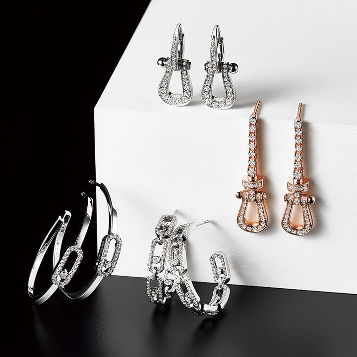 右から・ピアス「フォース10」〈PG×DIA〉¥1,397,000ピアス「フォース10」〈WG×DIA〉¥957,000(ともにフレッド/フレッド カスタマーサービス)