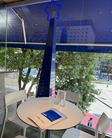 店内はブルーとホワイトで統一され、まるで夜空を思わせるワクワクする空間です。