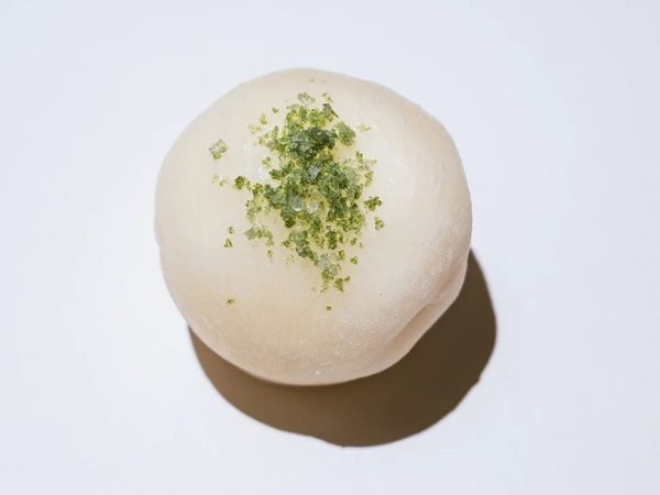 みどり色だと抹茶塩を思い浮かべますが、これは「笹」の香りを感じる塩をベースにブレンドを施したもの。雪見だいふくの「大福餅」の印象が、ほんのり「笹団子」のような風合いとなる味変が楽しめます。