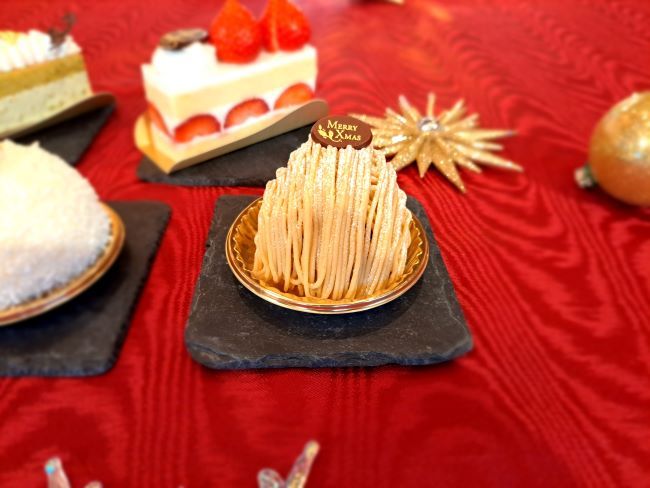 毎年、素敵なクリスマスケーキを販売している同ホテル。毎年新作を販売するため、クリスマスが終わるとすぐに「来年はどんなケーキにしようか」と考え始め、1年かけて試作・改良を重ねて完成させるのだそう。「どのケーキも、“甘みと酸味”など味や食感のバランスを重視しています」と、ペストリーシェフの岩根由紀子さん。今年販売されるケーキとクリスマス菓子合わせて12種にも、そんな岩根さんの思いがたくさん詰まっています。それではさっそく紹介していきましょう~。