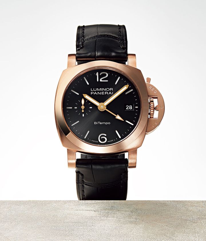 「ルミノール クアランタ BiTempo ゴールドテック™」〈パネライ サテン仕上げゴールドテック™、直径40㎜、自動巻き、アリゲーターストラップ〉¥3,839,000(パネライ/オフィチーネ パネライ)