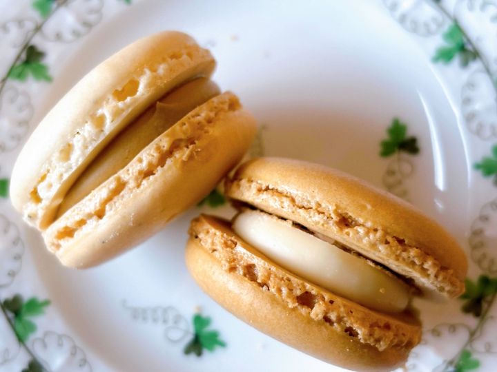 なかなか見られない、紅茶色したマカロン。味わいが気になりますね…!