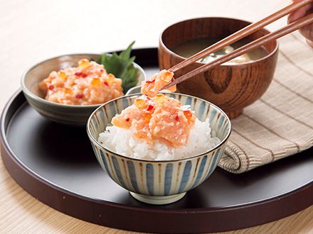 鮭フレークに辛子明太子を加え、しっかりと辛みをきかせた大人の味わい。白ごはんはもちろん、チャーハンやおにぎりの具材、パスタとの相性も抜群。「鮭×明太子の組み合わせが最高です!」(M.Eさん)