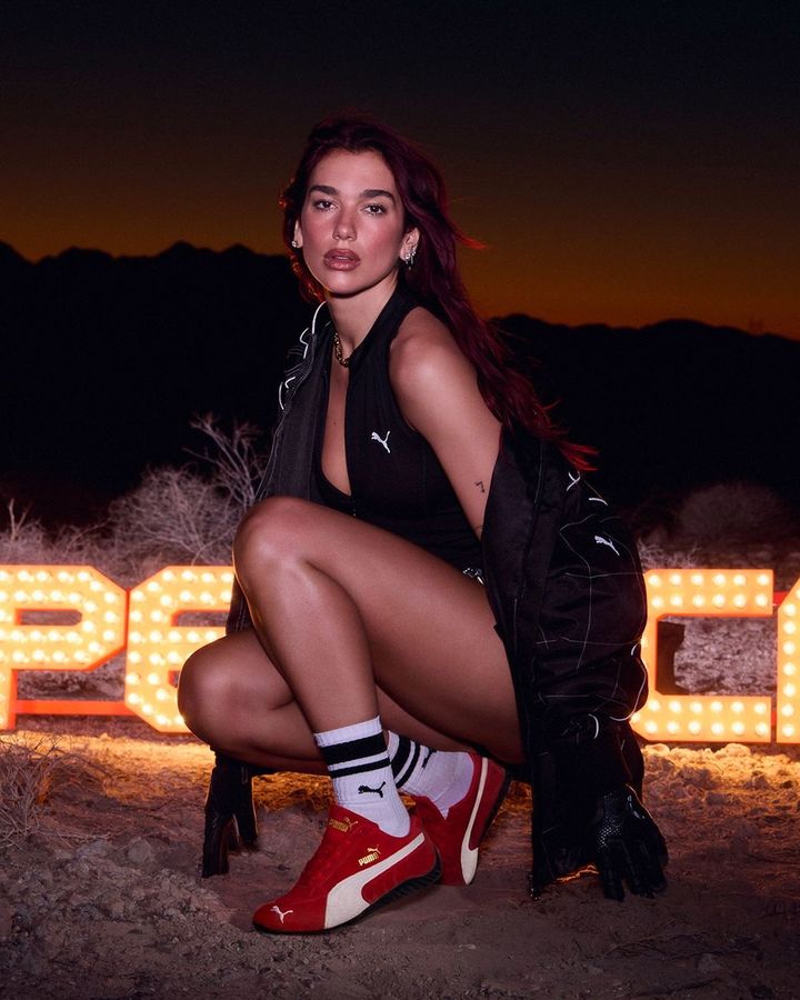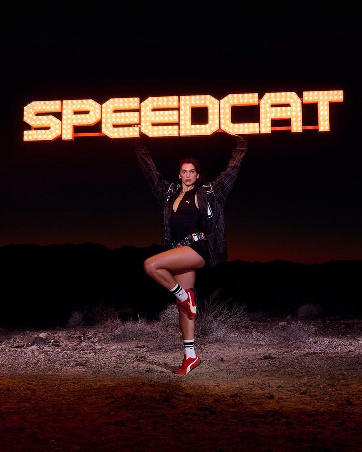 キャンペーンビジュアルでは、デュア・リパとロゼがそれぞれの個性で「スピードキャット」の魅力を表現。ロゼはブラックの「スピードキャット オージー」にシルバーのレーシングジャケットを合わせ、洗練されたクールなスタイルを披露。一方、デュア・リパは同モデルのレッドと、レーシングウェアをまとい、力強さとエネルギーを体現している。