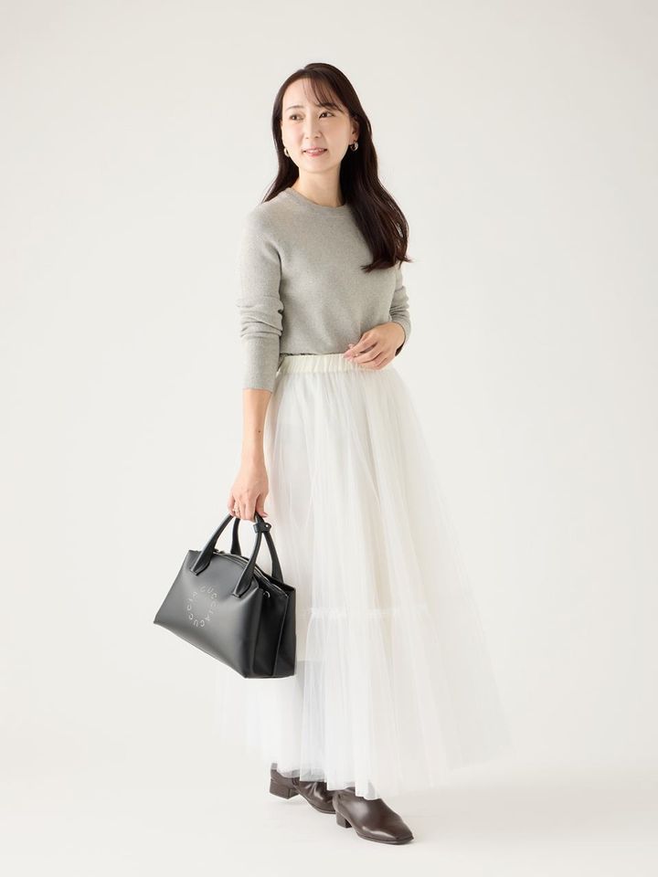 ニット¥15,400(ドレステリア)スカート¥24,970(ネイヴ)バッグ¥74,800(イアクッチ)シューズ¥15,950(ランダ)ピアス¥3,850(ヘンカ/ロードス)リング¥13,750(ココシュニックオンキッチュ/ココシュニック)ア)スカート¥24,970(ネイヴ)バッグ¥74,800(イアクッチ)シューズ¥15,950(ランダ)ピアス¥3,850(ヘンカ/ロードス)リング¥13,750(ココシュニックオンキッチュ/ココシュニック)