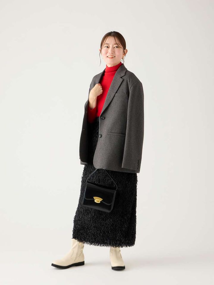 シャープできりっとカッコイイ雰囲気が似合うウィンターさんには黒に近いチャコールグレーがぴったり。コントラストが得意なので、インナーにビビッドなカラーのもの選ぶとコーデにメリハリがつき、洗練された大人の女性に印象になります。