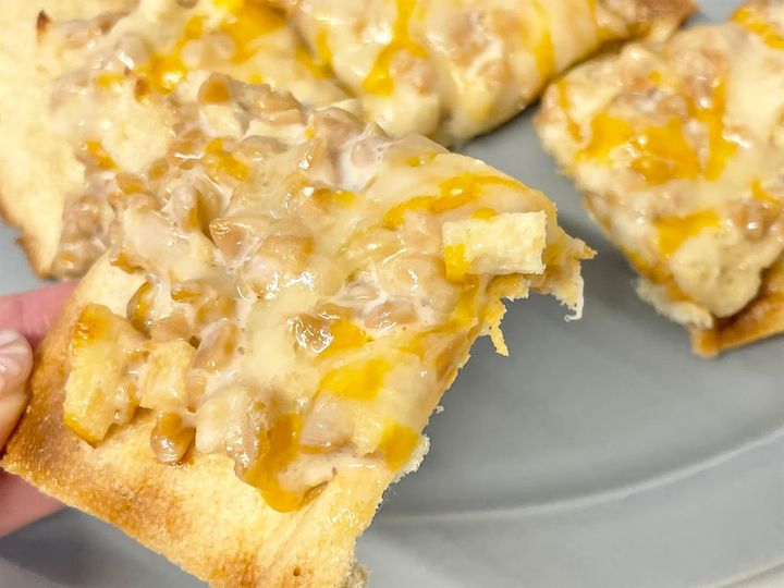 【1枚50円】カリッと軽くてクリスピー♪実は生地は油揚げの「納豆とチーズのお揚げピザ」に挑戦!低糖質♪