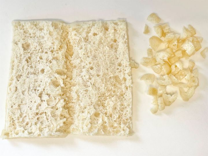 油揚げは端を切り落として広げ、トースターで2分焼きます。