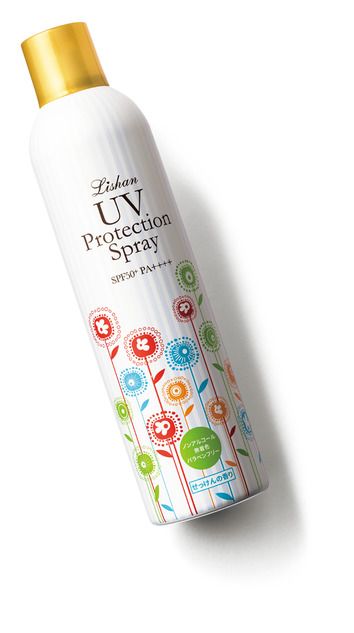 「玄関に置いていて毎日家族で使っています。無着色・ノンアルコール・バラベンフリーと安心」。アイスタイルリシャン大容量UVスプレー SPF50+PA++++ 250g ¥1,200