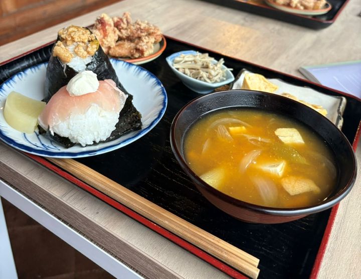 ほぼ初対面の私をあたたかく受け入れてくださった店長さん。アルバイト代として、思わず笑顔がこぼれる美味しいおむすび定食をいただきました。