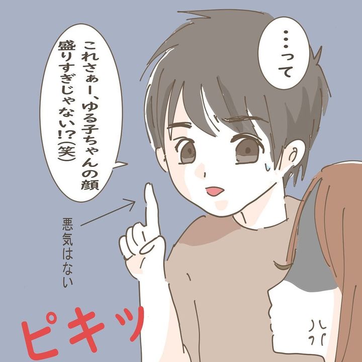 「…だって こんなリアル、誰からも需要ねーだろ(涙)」と話すゆる子さんの顔の描写が面白く、思わず吹き出してしまいました!ふわ夫さんが描いたリアルな似顔絵も笑いを誘います。