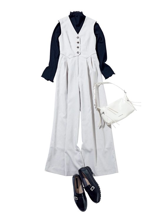オールインワン¥27,500/カデュネ カットソー¥3,298/grove(ワールド) バッグ¥13,900/CHARLES&KEITH JAPAN ローファー¥21,450/タラントン by ダイアナ(ダイアナ 銀座本店)