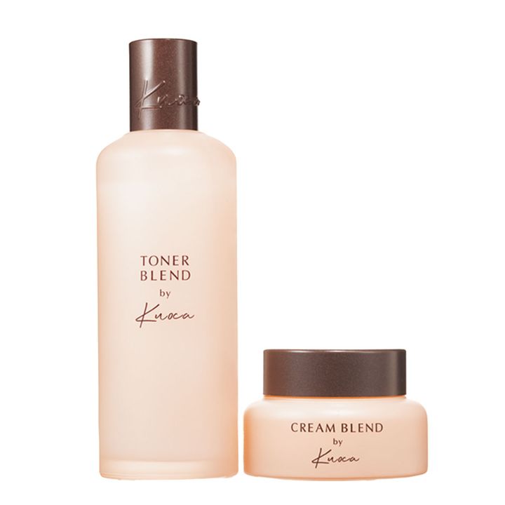 「とろみの強いトナーは手のひらで肌に入れ込み、浸透させたらクリームを重ねます。十分乾燥に負けない肌に」【左から】トナーブレンド 130㎖ ¥6,200クリームブレンド40㎖¥13,600