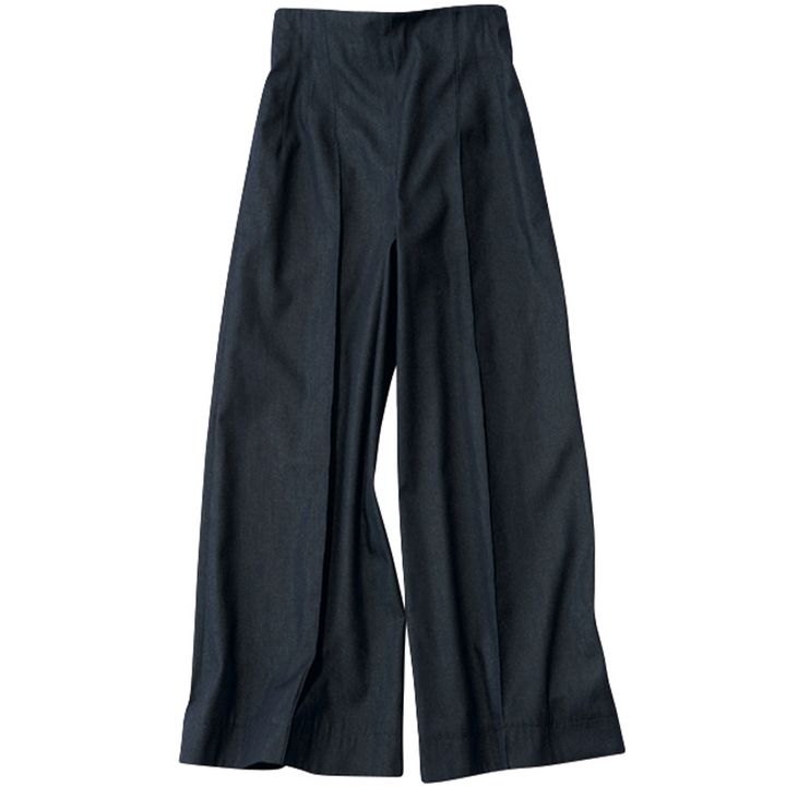 動くたびに揺れる分量感のあるワイドシルエットでドラマティックに。ウエストはゴム+ドロストのイージーさとマシンウォッシャブルも嬉しい。