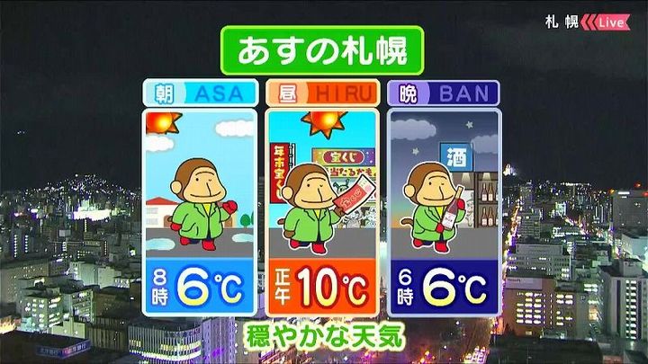 あす21日(木)の朝昼晩の札幌圏の天気をもんすけでお伝えします!