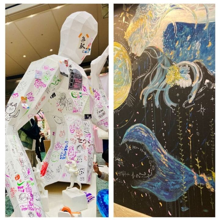 入り口付近には、自由になんでも書き込めるボードや、立体アートが飾られていました。来場者の皆さんが思い思いに書き込まれて、素敵な作品に!
