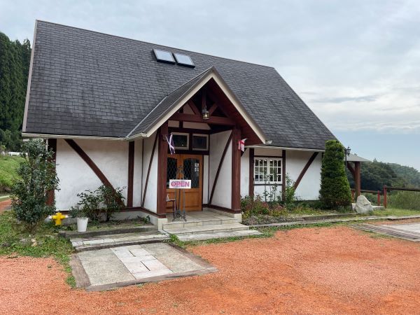 お店は、赤土の広大な前庭、白壁に三角屋根のロッジは、まさにイギリスの田舎町にありそうな ”良い雰囲気” です。 駐車場は、店舗前と坂を下った先の2か所が用意されています。昼時はいつも満車に近い状況です。また、他県ナンバーの車が目立ち、ここ「OAK HILL VIEW」を目指して来るお客さんが多いようです。