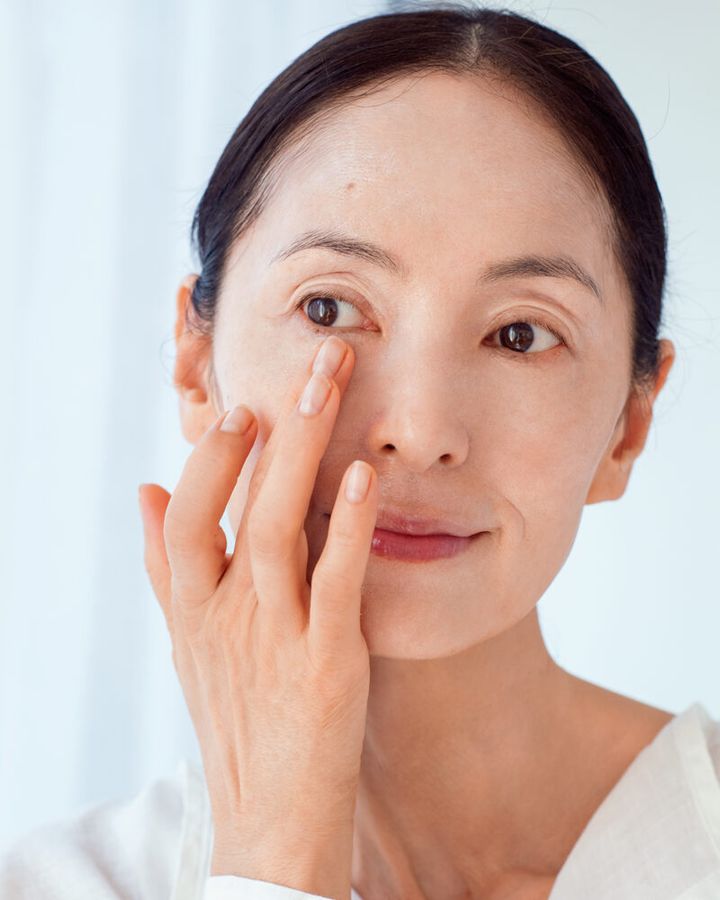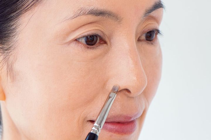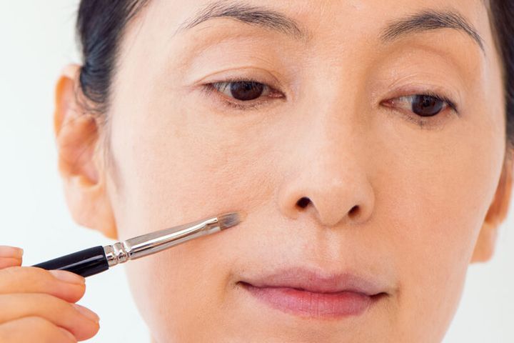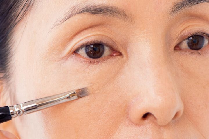 くすみが目立ちやすい目や口のまわりは少量を少しずつ重ねづけ。
