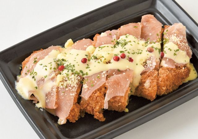 ▲豚ロースカツに生ハムをトッピングした「コトレッタボロネーゼ」(972円)はシェアするのにちょうどよいボリューム感