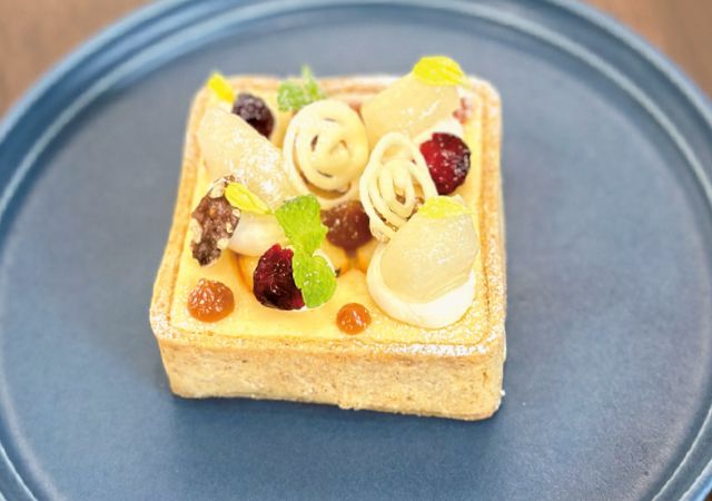 ▲冬メニューの「梨のチーズケーキタルト」750円
