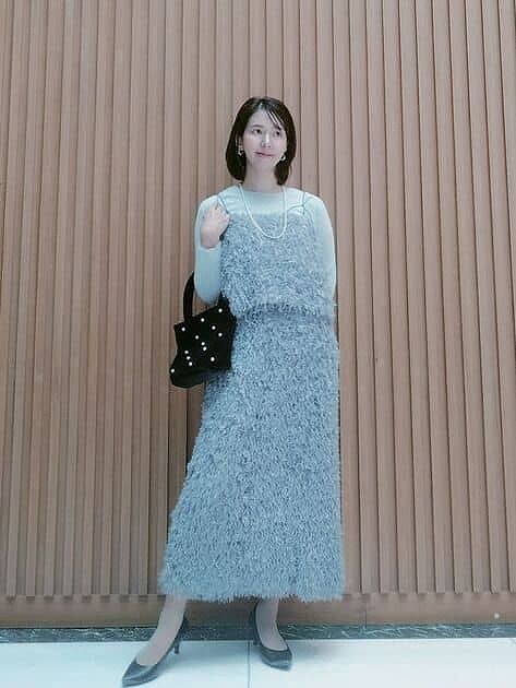 華やかで品のよいトレンド感があるセットアップ。シャギー素材でボリューム感がありつつもスタイリッシュに整えてくれるアイテムです。華やか系が苦手な方でもインナーや小物次第で雰囲気も自由自在。今回はインナーをラメ素材の物をチョイスして冬のイベント感を意識したスタイルに仕上げました。