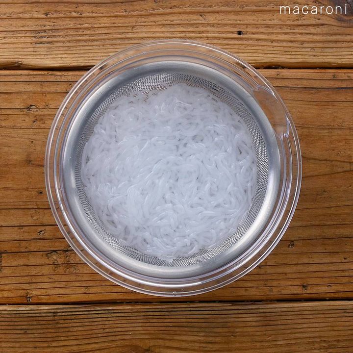 4: 煮立たせないように3分ほど加熱し、よく温まったらしらたきを盛った器に注ぎます。